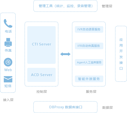CTI服務(wù)器采用獨(dú)創(chuàng)的內(nèi)存映射技術(shù),保障兩臺(tái)服務(wù)器故障切換時(shí)的數(shù)據(jù)統(tǒng)一,從而不會(huì)中斷當(dāng)前通話。